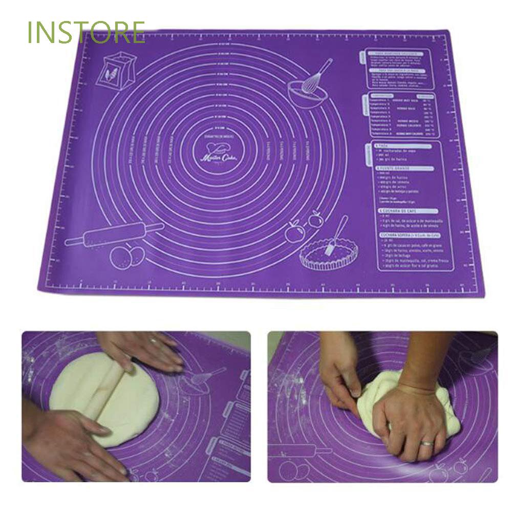 Package Included:1 * kitchen silicone matProduct color: PurpleSize:As Picture ShowWeight:100gName: kitchen silicone matProduct material: Silica gel Tips:1. Avoid direct contact with an open flame and prevent the product from being ignited. If the product is placed at temperatures above 230 degrees Celsius for more than 20 minutes, the life of the product will be reduced.2. Avoid using a too sharp knife to cut the dough to avoid scratching the product, Professional dough knife available.