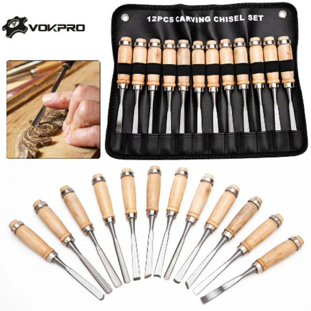 Pisau Set Ukir Pahat Kayu 12 in 1 Wood Carving Art Knife - OE12Pisau ukir dengan 12 jenis mata pisau yang sangat berguna saat Anda sedang memahat kayu. Wajib dimiliki bagi para profesional pahat / ukir kayu, karena terdapat berbagai mata pisau yang dapat membuat pola pahatan tertentu.Features"12 in 1Anda mendapat 12 buah pisau dengan berbagai bentuk mata pisau. Masing-masing mata pisau memiliki fungsi tersendiri saat Anda mencoba membuat pola atau corak-corak pada permukaan kayu.""High Quality MaterialPisau pahat terbuat dari bahan material kayu pada bagian gagang dan stainless steel pada bagian mata pisau. Anda dapat memahat kayu dengan sangat bagus, akurat dan mudah dengan pisau ukir ini.""Carving ToolPisau ini biasa dgunakan untuk mengukir, atau mengikis kayu. Wajib dimiliki bagi Anda yang ingin mengukir kayu."Package ContentsBarang-barang yang Anda dapat dalam kotak produk:"1 x 1/2"" wood chisel""1 x 1/4"" wood chisel""1 x 1/4"" round nose chisel""1 x 1/4"" square wood chisel""1 x 1/4"" skew wood chisel""1 x 1/4"" diamond point chisel""1 x 1/4"" curved chisel""1 x 1/4"" ""U"" gouge""1 x 1/2"" wood turning gouge""1 x 1/2"" straight gouge""1 x 9/6"" straight gouge""1 x 1/2"" parting tool"#pahatukir#kerajinan#perkakas#alat#pisauukir#perlengkapan