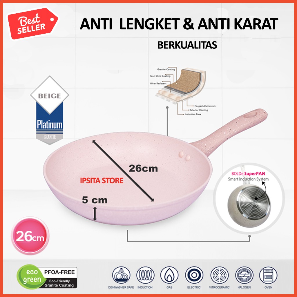"BOLDe SUPERPAN FRY PAN - Panci Penggorengan dgn GRANITE COATING 26 cmRESELLER & DROPSHIPPER WELCOME TO JOIN WITH US :)* Bagi DROPSHIP silahkan cantumkan nama pengirim + no hp di catatan. * JANGAN LUPA CANTUMKAN WARNA YA KAK, JIKA TIDAK AKAN KAMI KIRIM RANDOM SESUAI STOCK YG READY* Harga Murah Sangat Cocok Buat RESELLER.* Layanan Chat aktif : Senin - Sabtu Mulai jam 8 pagi - 4.* Sore, Malam, Minggu dan Hari Libur ( slow respon).* KIRIM : Senin - Sabtu (Sesuai Jam Ekspedisi)* ORDER SEBELUM JAM 4 SORE LANGSUNG DIKIRIM.BOLDe SUPER PAN - FRYPAN 26 cm with GRANITE COATING ORIGINAL 100%- Diameter 26cm- PFOA FREE- Granite coating (jauh lbh awet dr teflon biasa)- Anti lengket- Tebal Panci 3mm (2x lipat lbh tebal dr merk lain)- ECO GREEN Technology- Bisa digunakan di kompor gas, listrik dan induksi- Dishwashersafe- Aman digunakan di oven- Tidak mengandung bahan kimia berbahaya- Induction bottom untuk jaminan pemanasan yang merata ke seluruh permukaan- Mudah digunakan dan dibersihkanCocok untuk Kompor induksi: juga cocok untuk Kompor listrik: #panciantikarat #pancialumunium #pancitahanlama #panciantipenyok #panciantigores #pancialumunium #pancitermurah #panciantilengket #pancitahanlama #panciserbaguna #pancimultyfungsi #panciantigores #pancistainless #pancimur