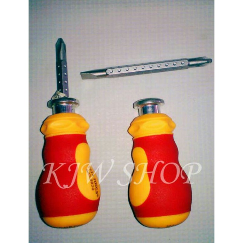 Jual Murah Perlengkapan di Kota Kupang Obeng Cebol Bolak Balik + - Gagang Karet Obeng Pendek Pegangan Karet +- Screwdriver Plus Minus dari Kjwshop Kota Surabaya
