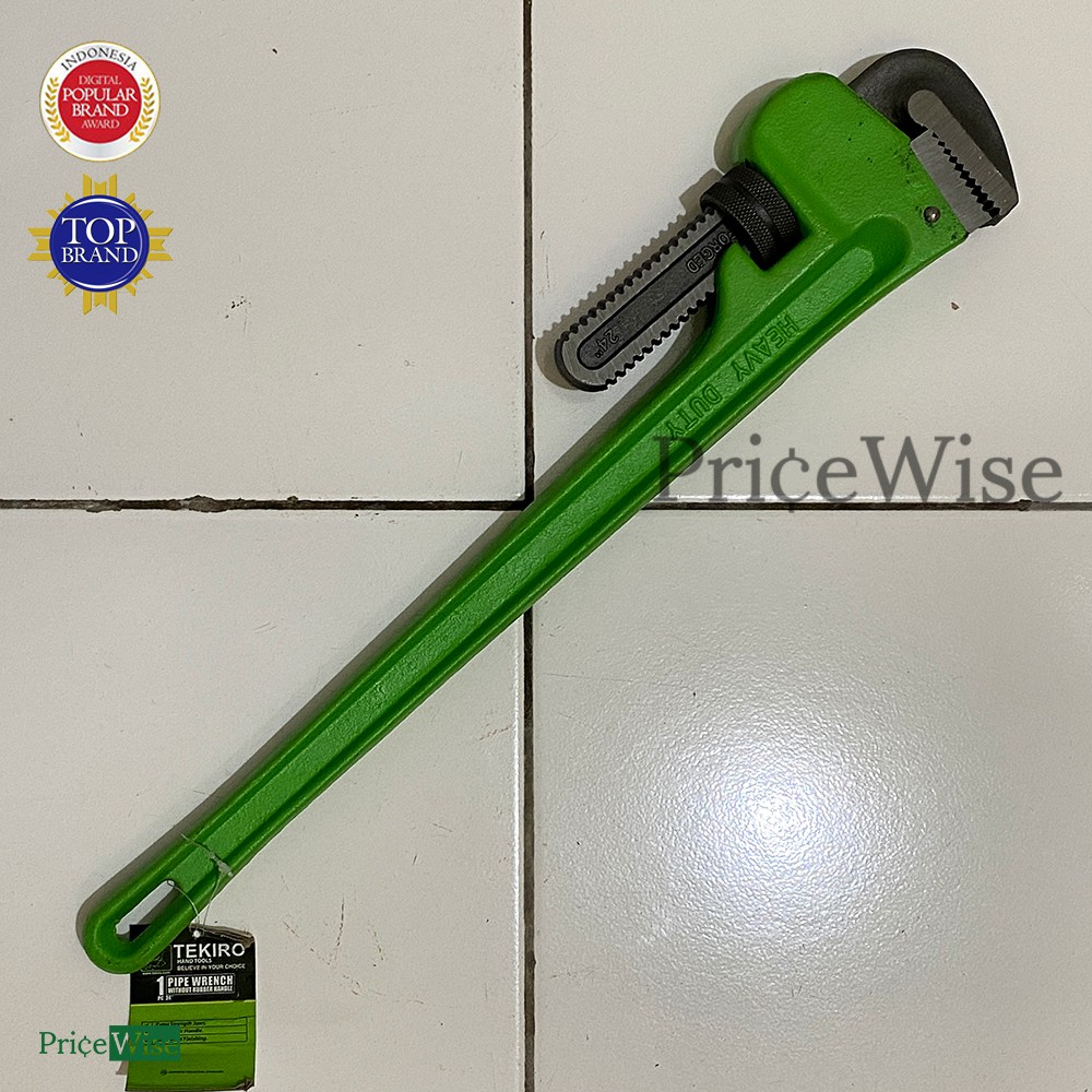 Merk: TekiroItem Code: WR-PP0293Ukuran: 24 inchBukaan Maksimal: 90 mmExtra Strength JawsErgonomic HandleSand Blast FinishingJIS (Japan Industry Standard)Barang dijamin original Te