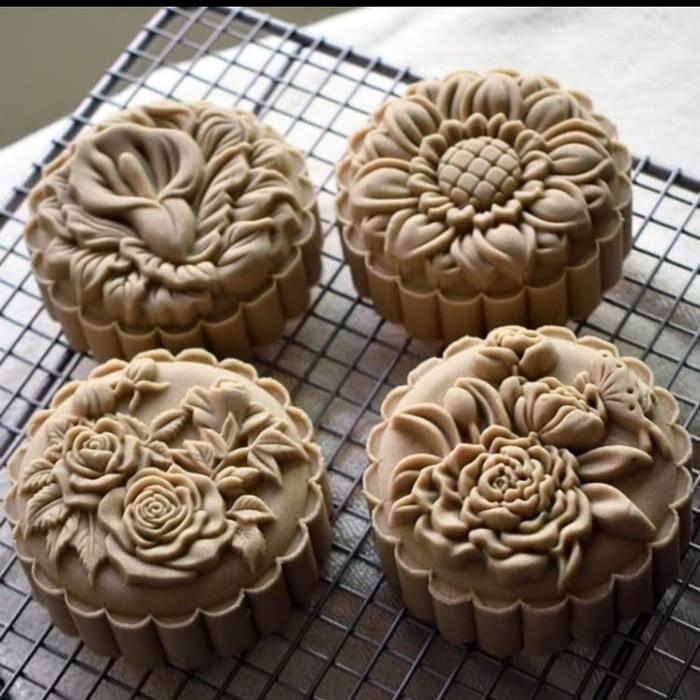 Name: Cetakan Mooncake Kue Bulan 125g 125gram Moon Cake 125gr Mooncake Motif Bunga Flower 4 Press Mold