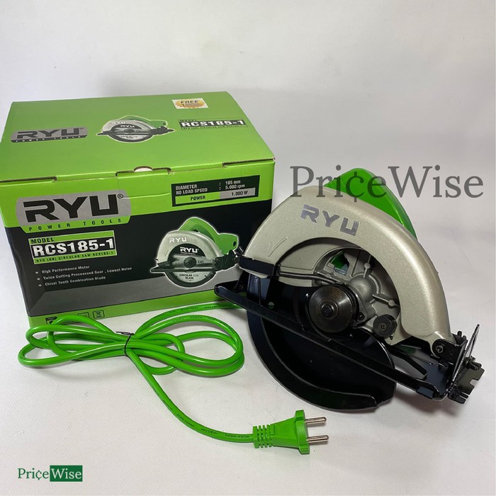 PILIH VARIAN "Tambah Bubble Wrap" UNTUK PENGAMANAN EKSTRAMerk: RYUModel: RCS185-1Diameter Pisau: 7 1/4inch (185 mm)Kecepatan Tanpa Beban: 5.000 rpmDaya: 1000 wattMax. Cutting on 90 degrees: 63 mmMax. Cutting on 45 degrees: 40 mmBerat: 6