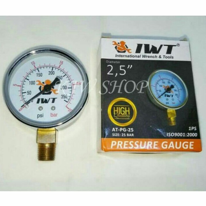 Terlaris Perlengkapan di Kabupaten Lembata Manometer 25bar 25 Kg Pressure Gauge 25 Bar 25kg Iwt Mano Meter Pengukur Tekanan Angin Drat 1/4" dari IWT Kota Surabaya
