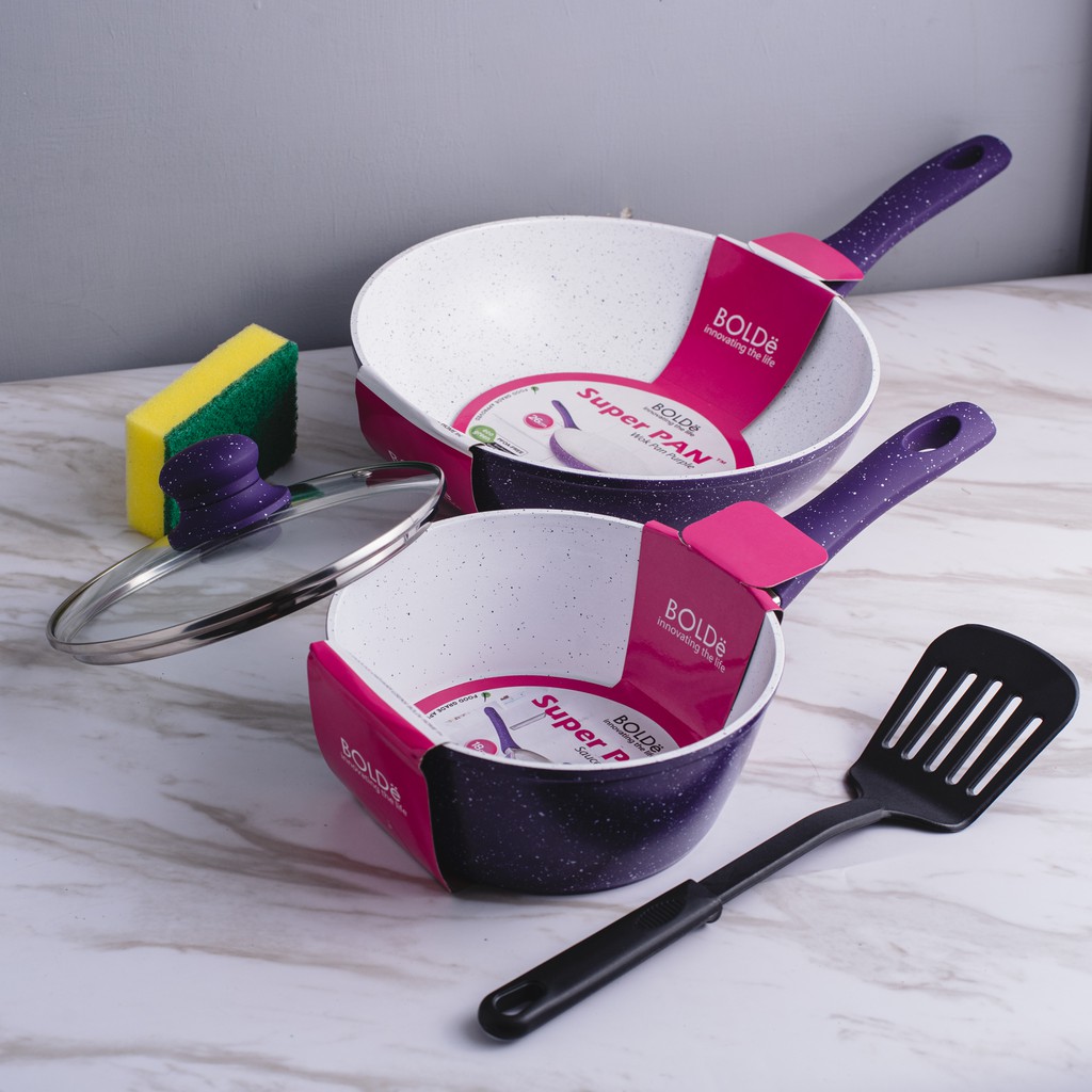 Jual Murah Perlengkapan di Kabupaten Ende Bolde Super Pan Wok 26 Cm+panci 18 Cm Dengan Tutup Kaca Bahan Keramik Bonus Spatula & Spon dari Bolde Kota Medan
